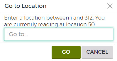 You can now jump to a specific location via the Main Menu. Select > Go to Location, and then type a page number or location, such as Cover.![]()